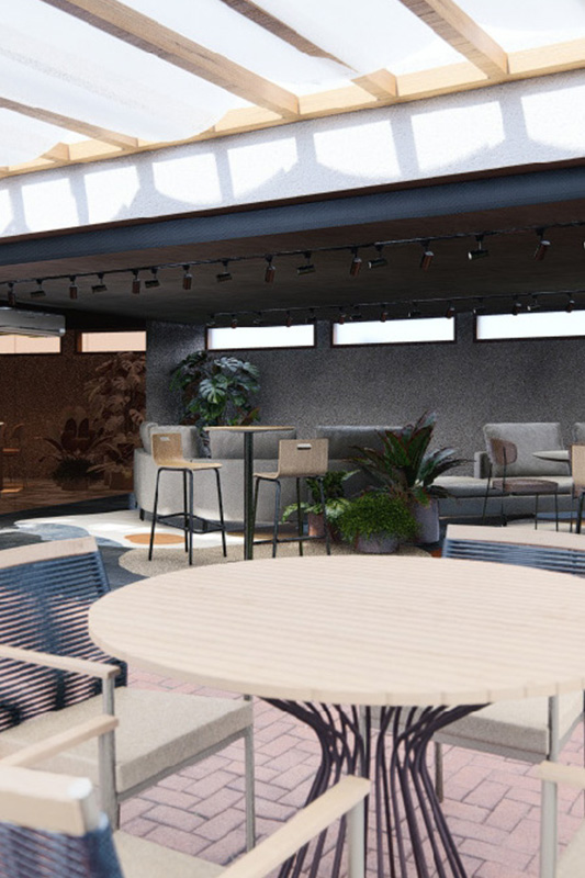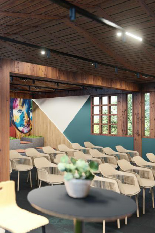 Para coffee breaks, coquetéis ou encontros informais. Um espaço intimista e charmoso para momentos de descontração e troca.