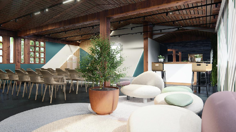 Um ambiente de convivência pensado para encontros informais, pausas e momentos de troca ao longo do evento.