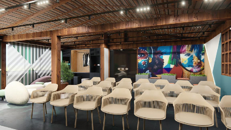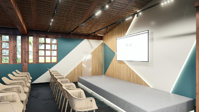 Ele participa da experiência. Arquitetura, luz, materiais e fluxo foram cuidadosamente pensados para diferentes formatos de eventos, reuniões e gravações.
